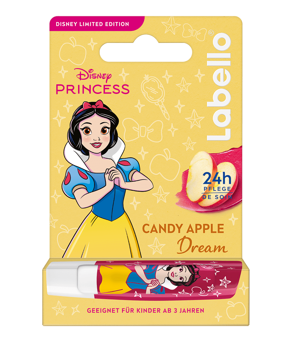 Verwöhne deine Lippen mit Labello Candy Apple Dream der Limited Disney Princess Edition. Die Formel mit natürlichen Ölen und Kirscharoma spendet 24h Pflege und schützt sie vor dem Austrocknen - ganz ohne Mineralöle. Der Lippenpflegestift verleiht deinen Lippen ein zartrotes Finish und umhüllt sie mit dem aufregenden Duft von Kirschen. Für frisch aussehende und spürbar gepflegte Lippen - den ganzen Tag.