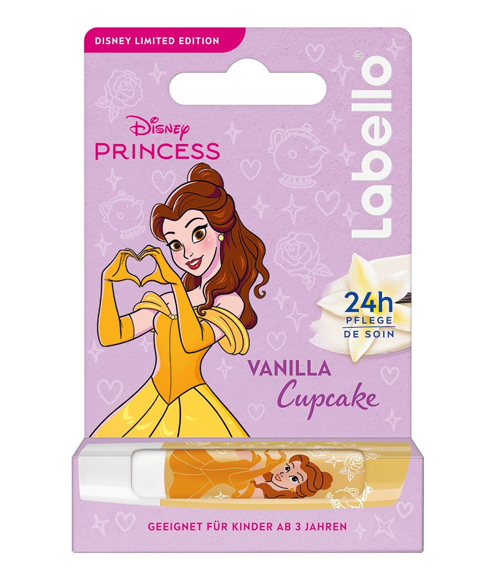 Verwöhne deine Lippen mit Labello Vanilla Cupcake der Limited Disney Princess Edition. Die Formel mit süßem Vanillearoma spendet 24h Pflege und schützt sie vor dem Austrocknen - ganz ohne Mineralöle. Der Lippenpflegestift verleiht deinen Lippen ein geschmeidiges Gefühl und umhüllt sie mit dem süßen Duft von Vanille. Für frisch aussehende und spürbar gepflegte Lippen - den ganzen Tag.